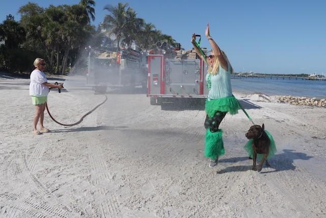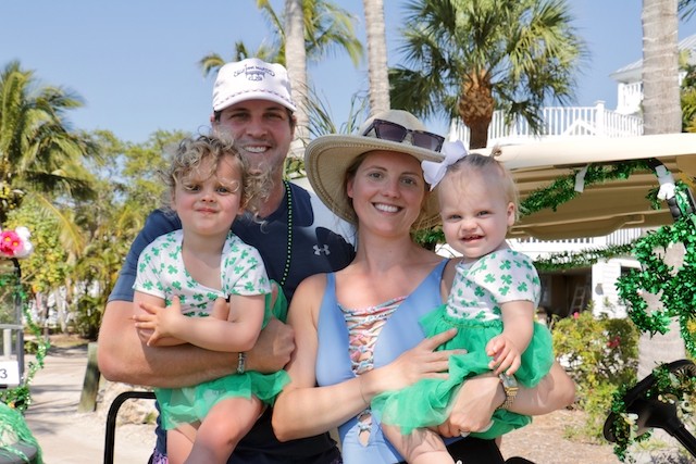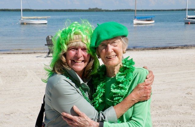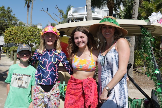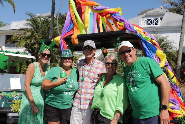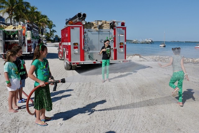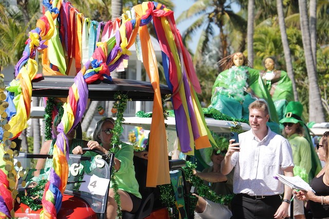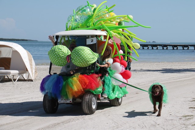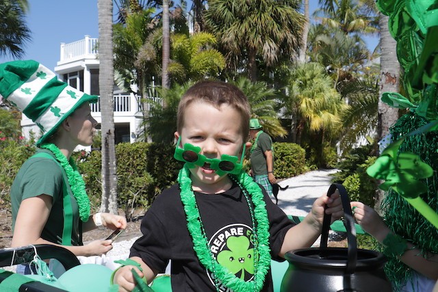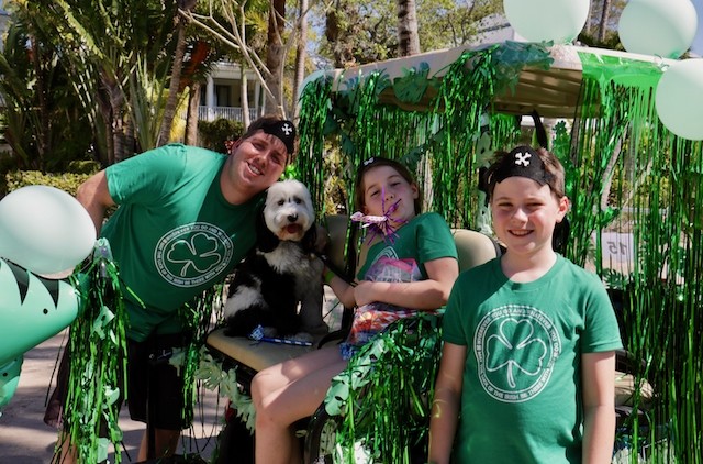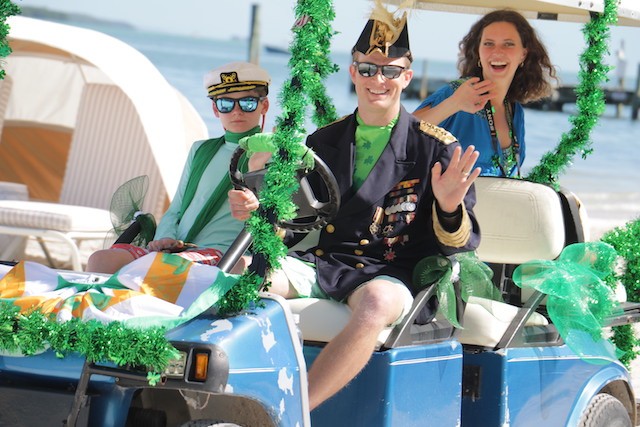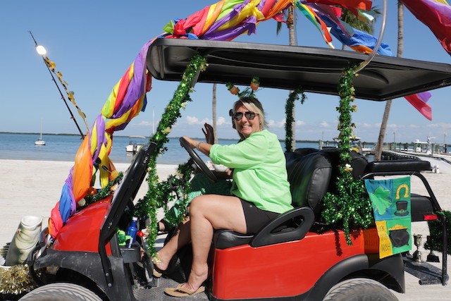 Saint Patrick's Day Island Style - Thoughts and Pictures by UseppaGin - Led by the Fire Department, decorated golf carts filled with friends, children, parents, and grandparents paraded up and down the beach. Other Islanders including Great-grandmother Keekee cheered them on. Judges were old time Useppans who once upon a time strutted and marched themselves. Their smiles were just as big handing out awards. The Grand Prize Winners were two carts… The Oseppa Man and The Oseppa Woman. Spirits of Useppa are still shaking their heads. It was a day filled with just the right amount of blarney and fun.