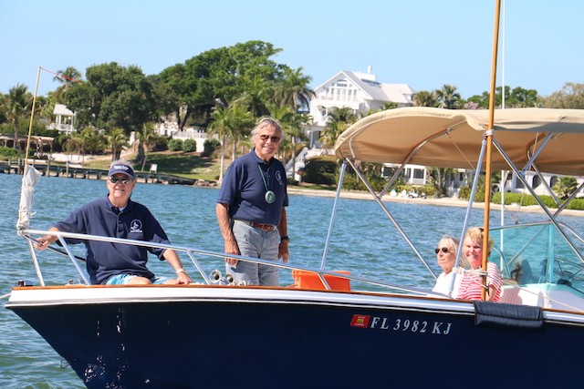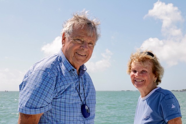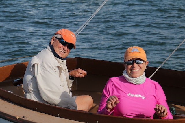 1st Annual UYC Stocker Race - Thoughts by Linda Colgan, Pictures by UseppaGin - On March 19th of this year, the Useppa Yacht Club catboat fleet sailed in the 1st Annual Kurt and Kathleen Stocker Trophy Race. Eight boats raced three times round the island. The Stockers’ two children, Jennifer and Peter, gave the trophy in memory of their parents, to be given to the winner of the race and engraved with the names of both skipper and crew. Ed King was this year’s winning skipper sailing with Kim Lockhart. Fittingly, the day was one of Useppa’s finest, with fair winds and bright blue skies. Kurt and Kathleen would be happy. Enjoy pictures of the race and pictures taken over the years of Kurt and Kathleen.