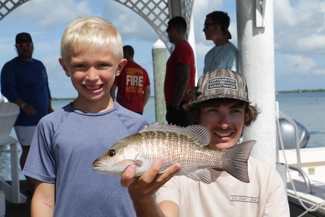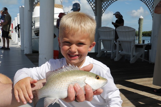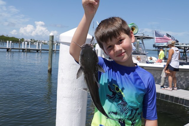 July 4th Kids Izaak Walton Fishing Tournament - Thoughts and Pictures by UseppaGin - Twelve kids caught twelve fish in Useppa’s July 4th Izaak Walton Kids Fishing Tournament. William Siviter caught the Most Fish. The Biggest Catfish was caught by Weston Beckman - a 19” Grouper. Brothers Brody and Benton Ball tied, each winning a trophy for catching the same size Biggest Mangrove Snapper. AND…. For the first time someone over twelve also won an award. Useppa’s bait shrimp had died. Frozen ones were purchased, but they weren’t the same. Captain Rhett Morris was on the island with family and friends. He and the kids got in their boat, went out, and caught bait. Captain Rhett won a trophy for Most Bait Caught. Thanks to Tournament Director Kyle Corey, Captain Ken Horney, and Jasmin Al-Shimary for making it all happen