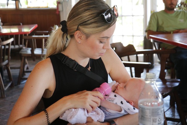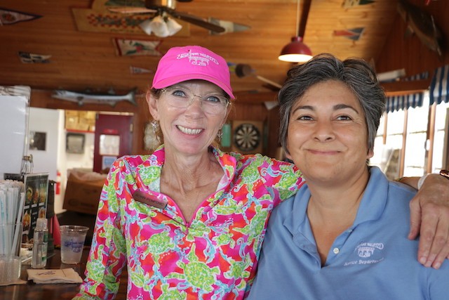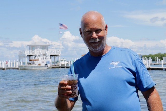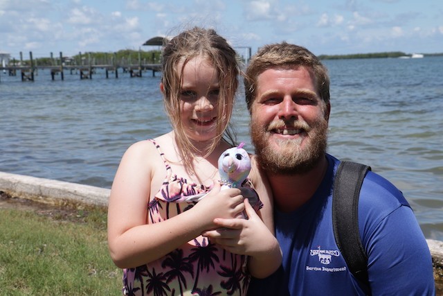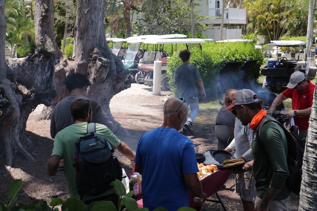 Employee Summer Barbecue - Pictures and Thoughts by UseppaGin - An old tradition returned with a summer barbecue for Useppa Employees. Instead of taking care of the island, Island stewards were taken care of at an old-fashioned picnic. Family members visiting their parents joined in. Second and third generational Useppa employees made the day even more fun. Captain Michael Keel was chosen Employee of the 2nd Quarter selected by his fellow Useppa workers. According to one, “Captain Mike goes above and beyond to help anyone in need whoever they are. He makes us all comfortable, and on the boat coming and going to Useppa, music is playing, he’s smiling and joking.” Captain Mike’s wife Samm and new baby Oaklee joined in the celebration.