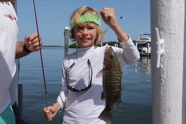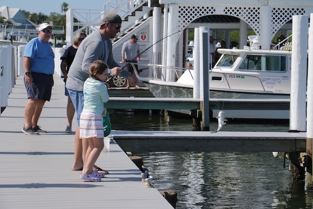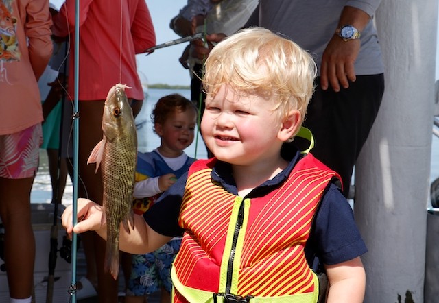 Labor Day Kids Izaak Walton Fishing Tournament - Thoughts and Pictures by UseppaGin - Twelve anglers cast their lines (Okay… This is not FAKE NEWS. Some moms and dads helped). From toddlers on up it was another day of kids fishing together on the Marina docks. Snappers, Catfish and a Pinfish were caught and released in the Izaak Walton tradition. Captain Ken Horney and Maggie McCormack made it all happen. Despite the hot summer heat, in the Useppa tradition, parents, grandparents, and kids all had fun.