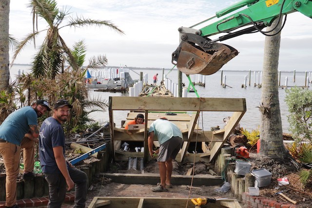 Useppa Thanksgiving After Hurricane Ian - Pictures and Thoughts by UseppaGin - It wasn’t the normal Island Thanksgiving. Instead of a festive dinner inside and outside on the patio, the roof on the Collier Inn was being replaced. Instead of Homeowners’ and Members’ boats tying up at the dock, workmen were busy rebuilding the destroyed Marina. But…. there were still smiles. All of us here, residents and employees share a sense of gratitude for the gift of Useppa in our lives. Recovery is happening one day at a time. Thanksgiving.
