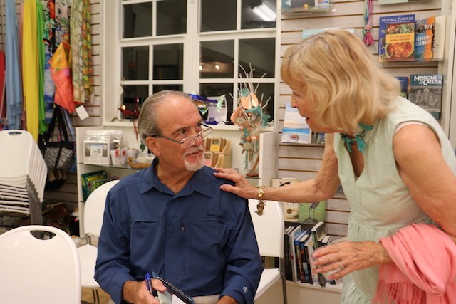 History and Fellowship: Author Bob Macomber at the Useppa Museum - Thoughts and Pictures by UseppaGin - In another sign of Useppa’s post-Ian recovery, author and Island friend Bob Macomber recently spoke at the Barbara Sumwalt Museum. It was a gathering of friends, history buffs, a talk, book signing, and fellowship. The story Macomber told was “The Patriot and The Widow.” James Henry from a Florida family married Sophira (AKA Sophia) a member of the Seminole tribe. It was an interracial marriage in a time when that was unacceptable. To many of James Henry’s family he was also a disgrace because he fought for the United States instead of fighting for the Confederacy. Useppa was a Yankee outpost. James and Sophira lived there during the war with their daughter. Henry was shot by a sniper during a rescue mission off Ft. Myers. Sophira was still on Useppa and later Sanibel. Widowed four times she died in her 90’s. After his talk, Bob Macomber said, “I always enjoy it when I speak at Useppa--the audience is full of accomplished, nice people who ask great questions!” The Island equally enjoys Bob. “Onward and upward for us all....”