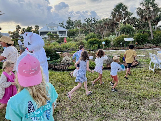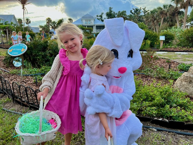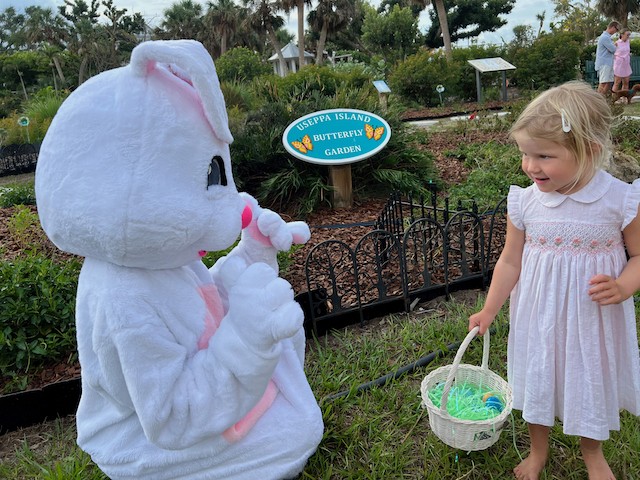 A Bunny, Egg Hunt, & Butterflies: Easter on Useppa - Thoughts and Pictures by UseppaGin - Still recovering from the damage of Hurricane Ian, Useppa’s Croquet Court was no place for the traditional Easter Egg Hunt. Bunny looked around and decided why not join the butterflies? Why not hide eggs in the Butterfly Garden? And so, on Easter morning while everyone was at the Sunrise Service on the beach, Bunny hid eggs and asked volunteers to bring snacks and crafts for Useppa’s children. Great idea Bunny!! Everyone old and young had fun.