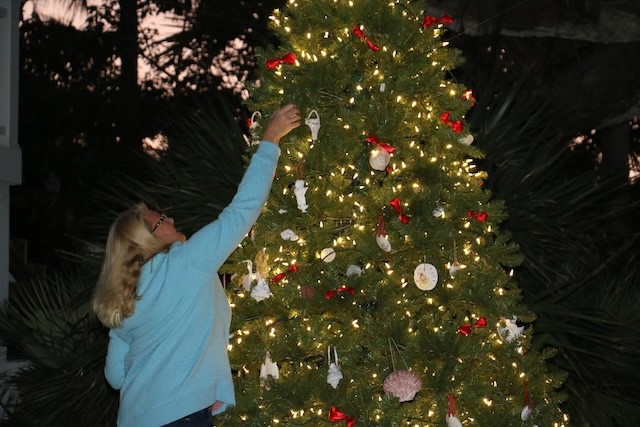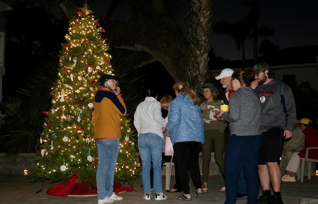 Tree Lighting - Pictures and Thoughts by UseppaGin - The annual Beach Tree Lighting had to be postponed this year because of last week’s bad storm. But on Useppa we never give up. A small hardy group of Islanders gathered decorating the tree on the patio overlooking the beach.
