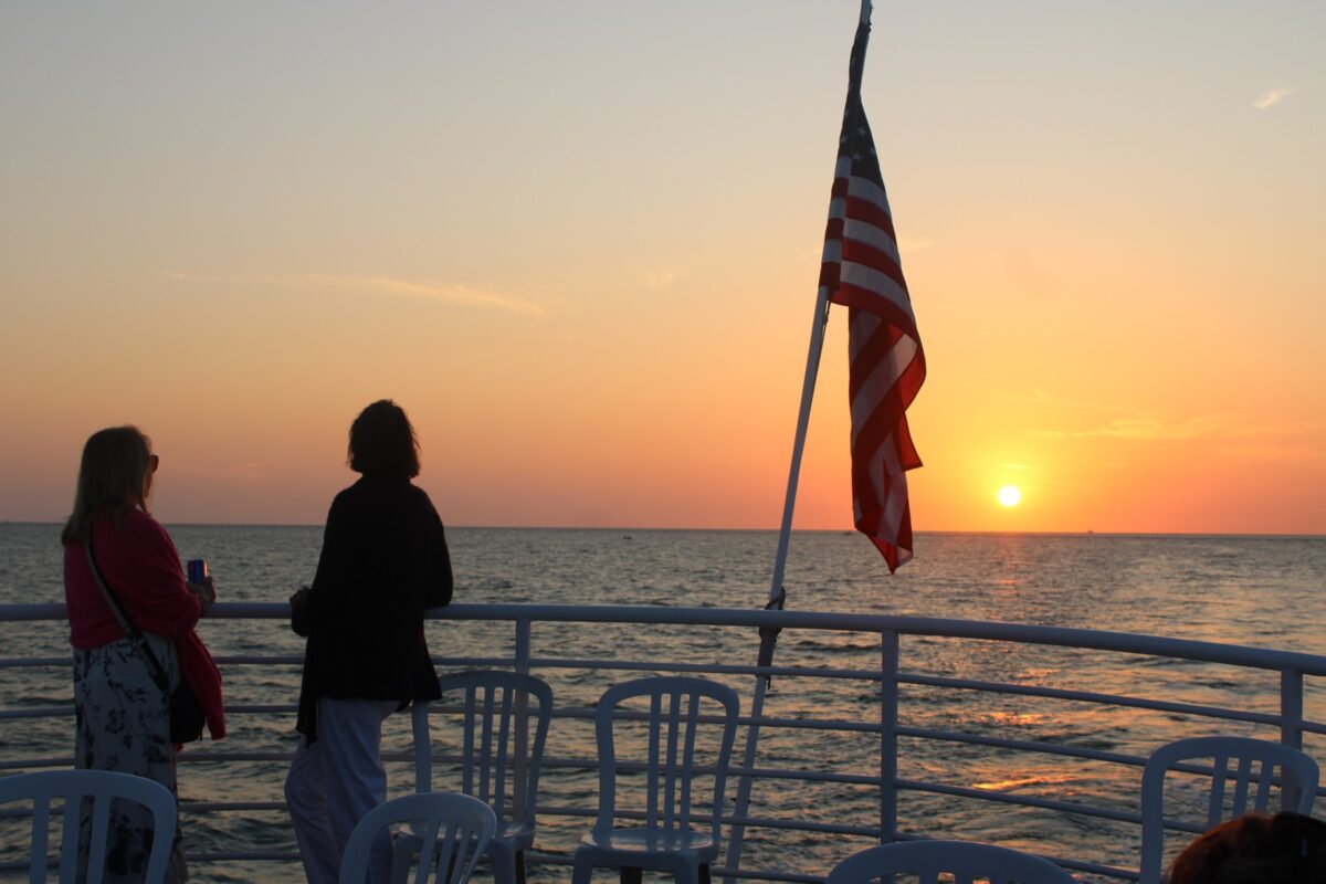 Sunset Museum Cruise & Author Bob Macomber – Thoughts and Pictures by UseppaGin – It couldn’t have been better, a sunset cruise sponsored by the Barbara Sumwalt Museum and a talk by multi-award-winning author Bob Macomber. The Lady Chadwick welcomed Museum members aboard, cocktails and snacks were served. Cruising the waterway toward Boca Grande Bob Macomber told stories about Useppa during the Civil War. It was history made real with a setting sun and green flash on the horizon.