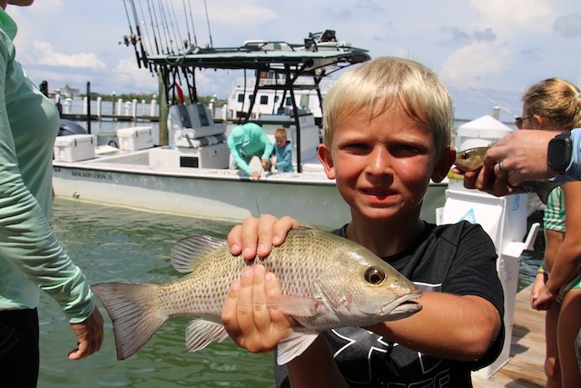 Izaak Walton 4th of July Kids Fishing Tournament - Thoughts and Photos by UseppaGin - Eighteen young fishermen lined the dock, stood on boats throwing a line, catching and releasing almost twenty fish. The smallest was a 7” Pinfish. The largest was 15” Snapper. The most unique fish was a little 8” Grunt. It was the first tournament for some and the last one for a veteran 12-year-old. Now she joins her mother as an Izaak Walton Tournament alum. Now like her mom, in the future she will help others catch a fish. Thanks to the Tarpon staff, and thanks to Kyle Corey for another great time.