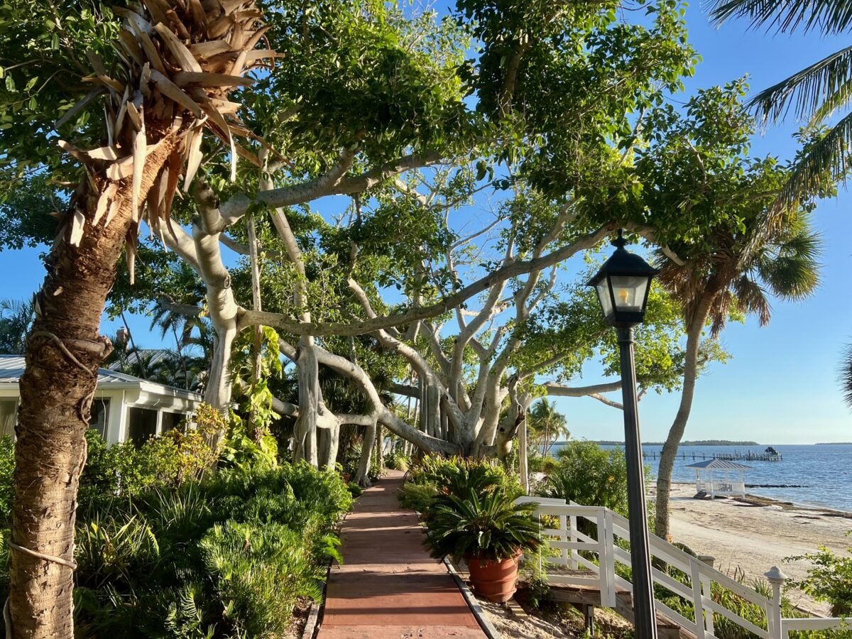 Summer Sunshine and Smiles – Thoughts and Pictures by UseppaGin – It was a quiet weekend with Island neighbors and friends enjoying their time on Useppa. During the week the Service Department and the Fire Department coordinated a controlled burn of landscaping debris. The Pink Path sidewalk improvements continued. And the best news is that the iconic Pink Path Banyan Tree is being trimmed and treated to prolong its life. To Useppa it’s not just a tree. It’s a symbol of past and present, a well-loved backdrop in hundreds of family photos. Children once held on its branches are now parents holding their own children smiling at the camera. Useppa recovery from Ian continues. Even the Banyan Tree is smiling.