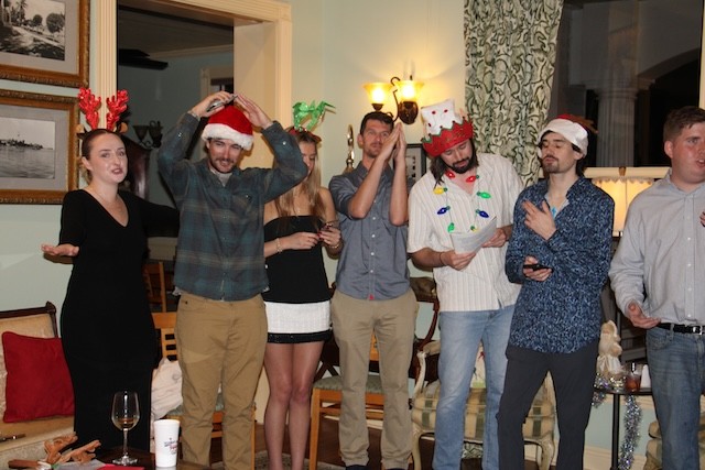 Christmas Eve Carols at the Collier - Thoughts and Pictures by UseppaGin - The tradition of caroling at the Collier Inn goes back at least 40 years. Some years inside, some years on the patio, voices join celebrating Christmas Eve. The number of singers was smaller this year, but the musical spirit couldn’t be contained. It was a robust mixture of fun and harmony. The Twelve Days of Christmas were celebrated with full-bodied musical and physical energy. Our leaders were all those under 35.