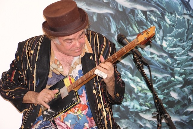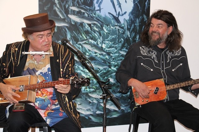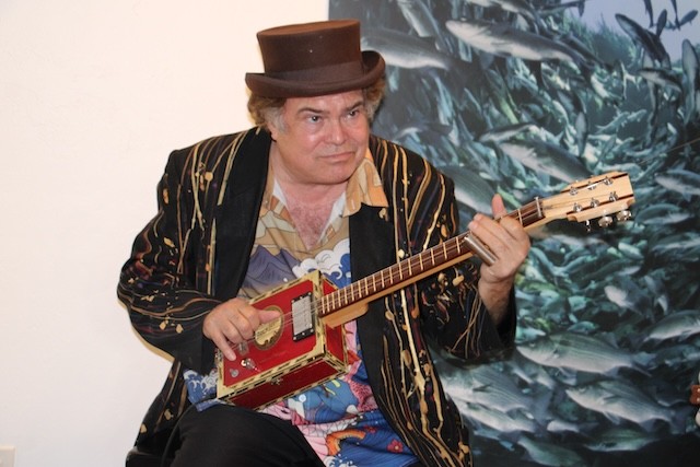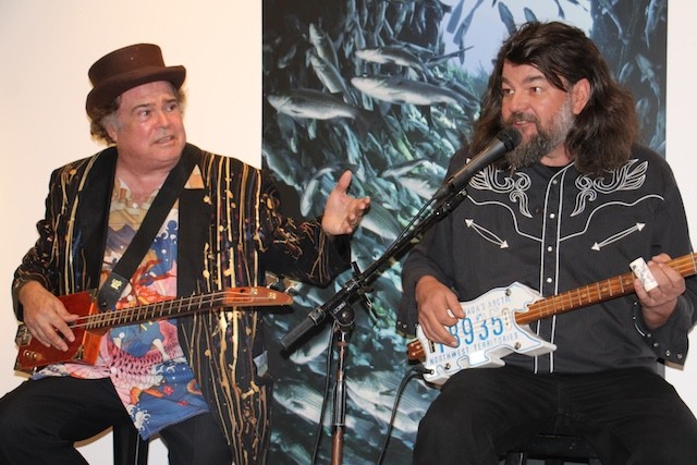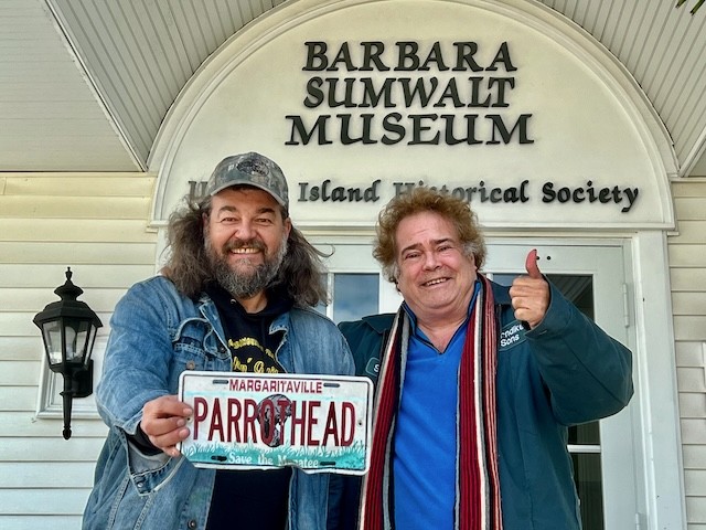 Cigar Box Guitar Music at the Museum - Thoughts and Pictures by UseppaGin - The setting was casual. Tablecloth covered tables and chairs instead of rows of formal seating. A well-stocked bar and delicious snacks set the stage. Then the music began. Steve Arvey, one of the top cigar box guitar players in the world and his friend Captn Catfish played for hours to an audience of head bobbing, shoulder bopping islanders. The next morning Captn Catfish and Useppa homeowner Doug Ryan were on a mission. A Jimmy Buffet Florida Margaritaville license plate inscribed Parrothead was found in a FEMA pile of junked golf carts. A new cigar box guitar will be made. A return visit by Steve Arvey and Captn Catfish is in the future. Thank you to Museum Director Rona Stage and all the volunteers who made a magical night happen.