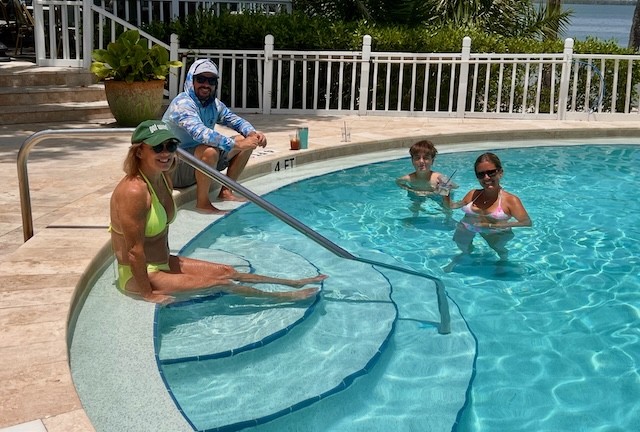 Friends, Families, and Fun on Useppa - Thoughts and Pictures by UseppaGin - Old and new friends explored the island. A family birthday was celebrated in the pool, at lunch on the patio, and in a picture on the Collier Inn steps. Perfect weather for lunch, an afternoon swimming, strolling the Pink Path. Useppa is a gift we share. Thank you to the men and women who make it all possible.