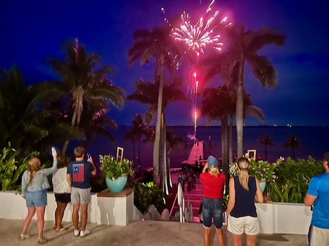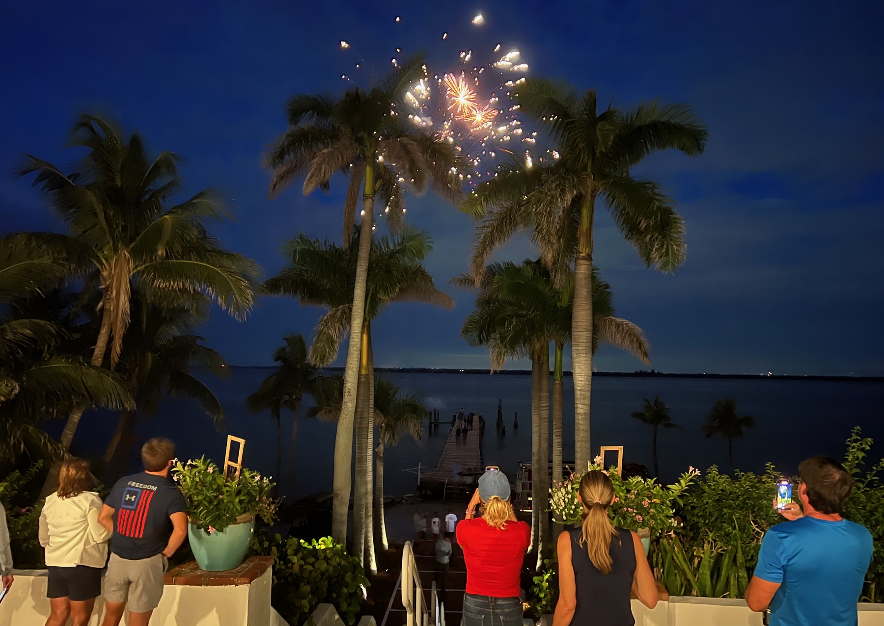 4th of July on Useppa - Thoughts and Pictures by UseppaGin - Fireworks lit the sky. Friends gathered for lunch at the Collier. Kids jumped into the pool. Grown-ups sat in chairs watching from the sidelines or paddled by. We celebrated Collier Joey’s 50th birthday. Island staff members made it all possible. Sunsets were a gift.