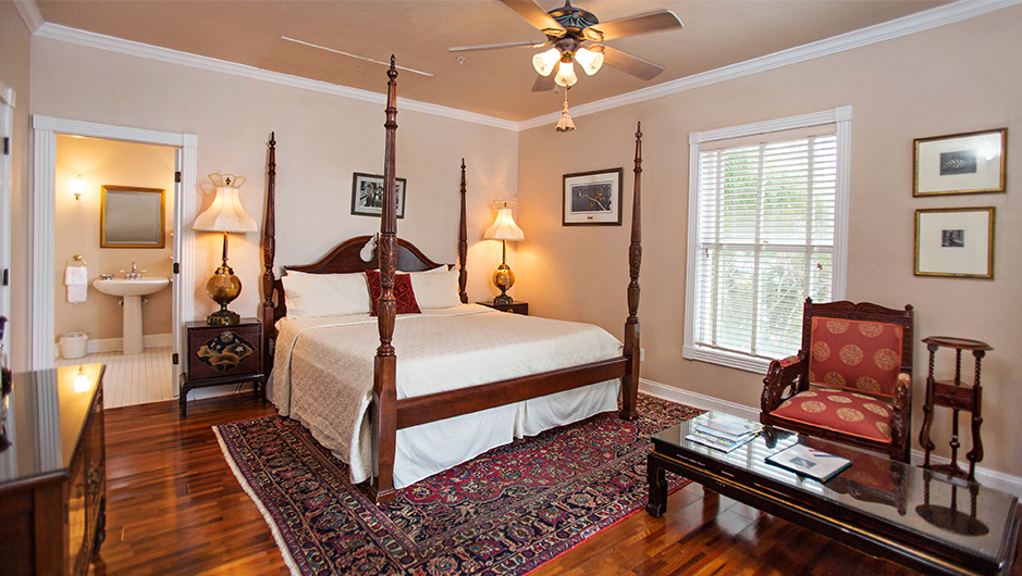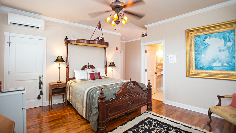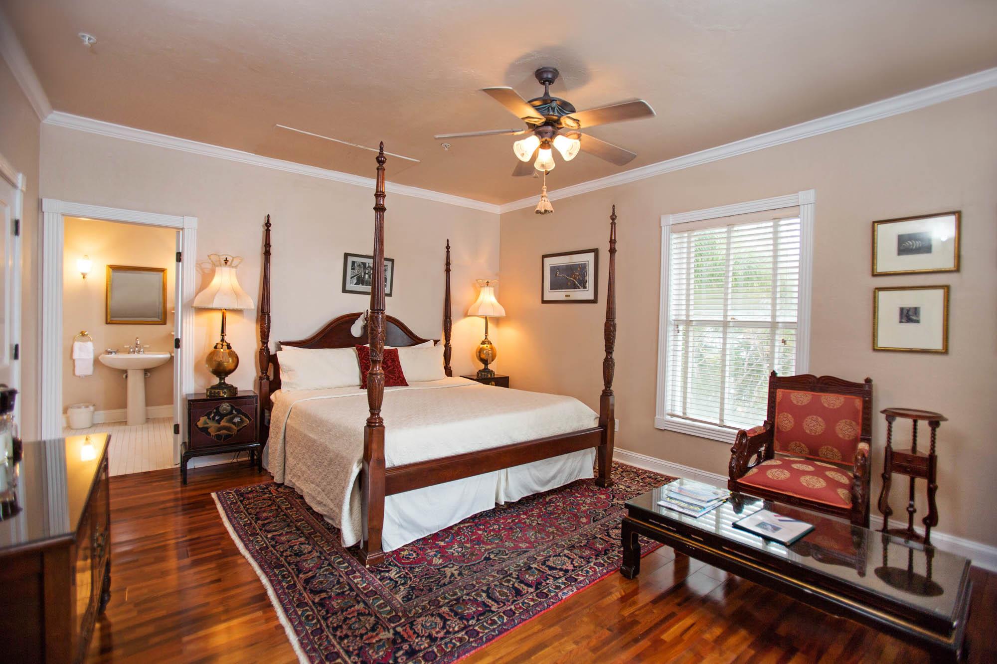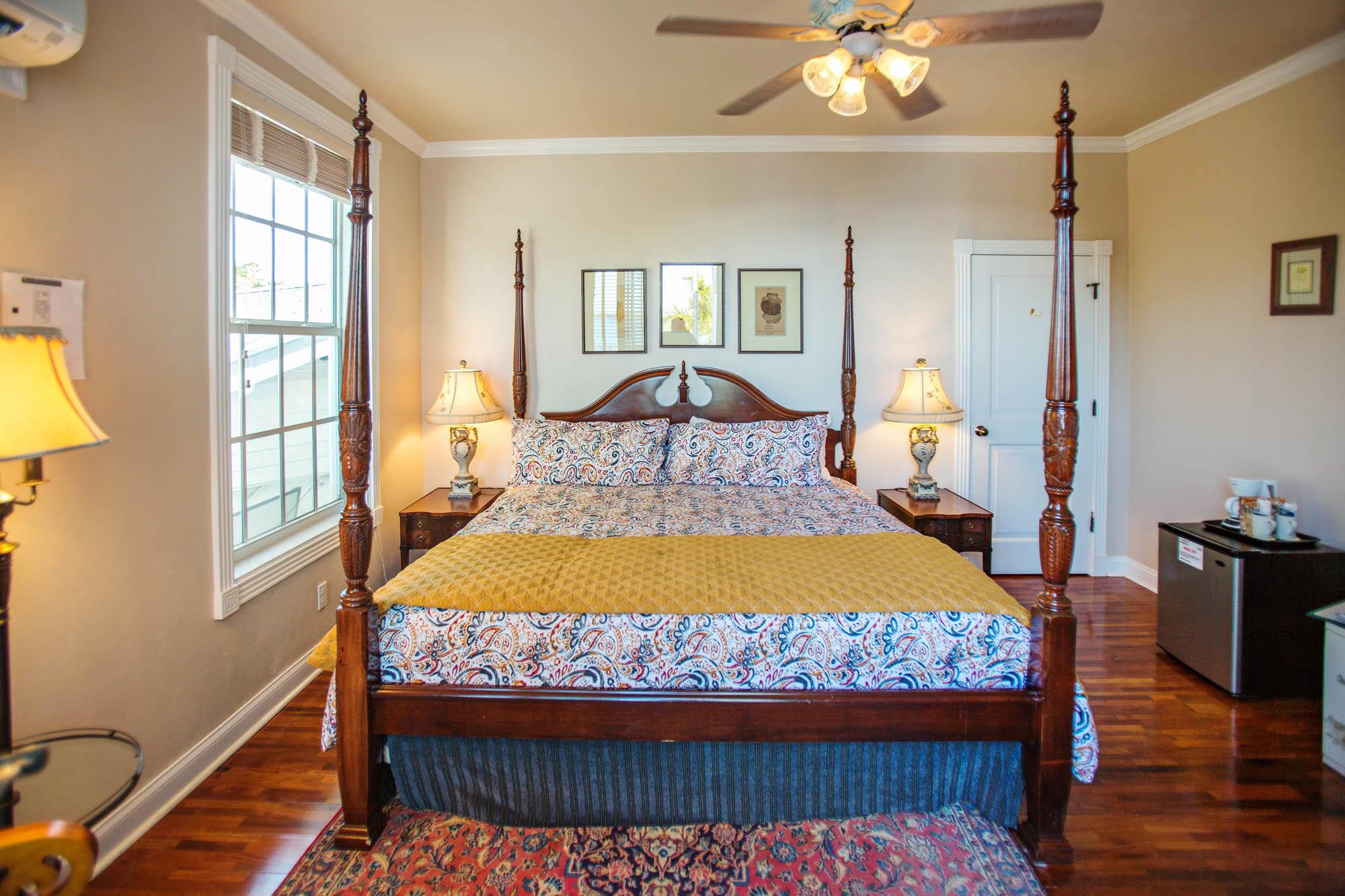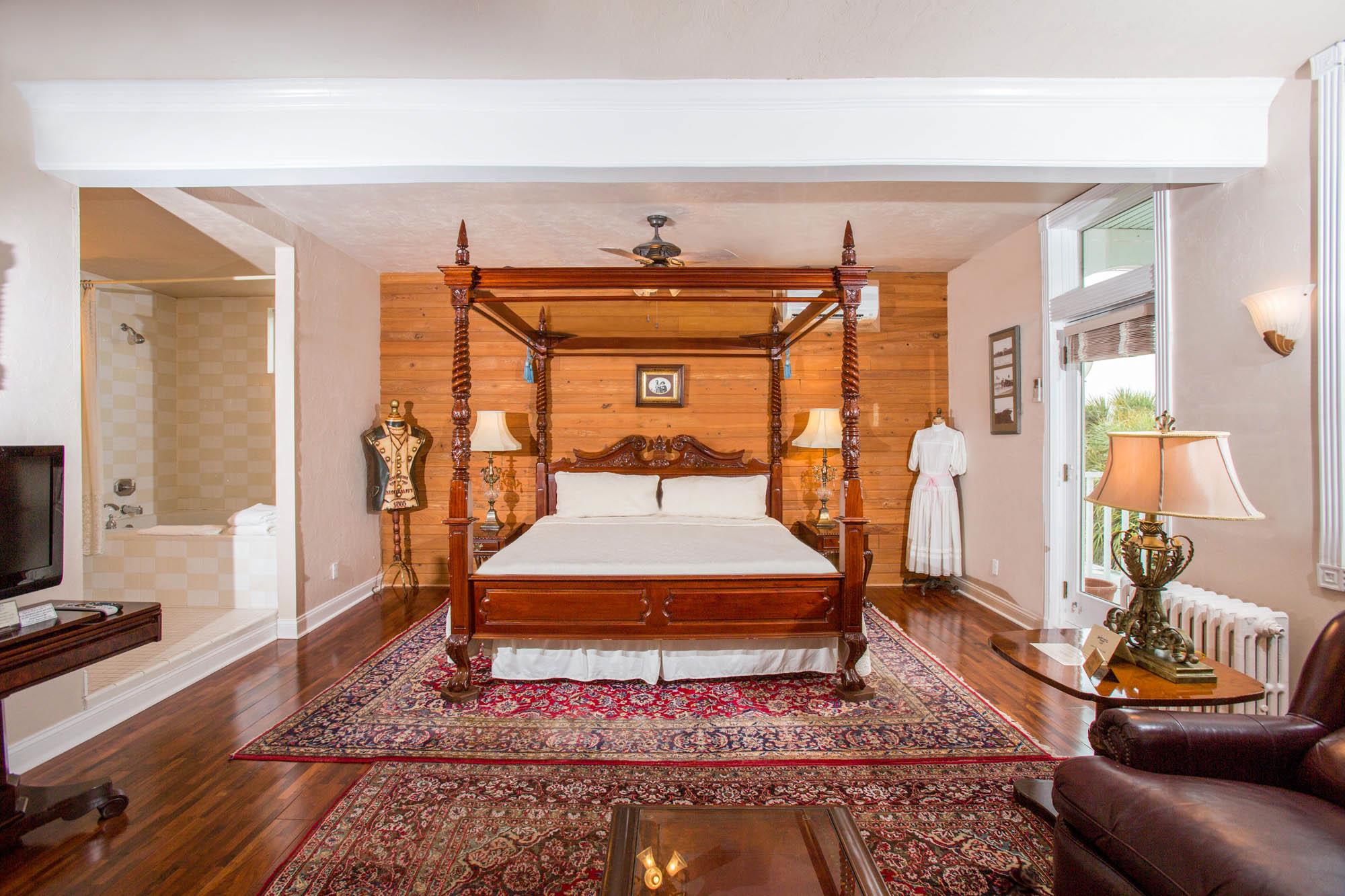 The Joseffa Room is located on the second floor of the Historic Collier Inn and offers a large open deck overlooking the bay and the pool patio. A four-poster king size bed, original hardwood floors and cozy ambiance make this room both quaint and romantic, reflecting an island legend of a Spanish princess named Joseffa who was held captive here two hundred years ago.