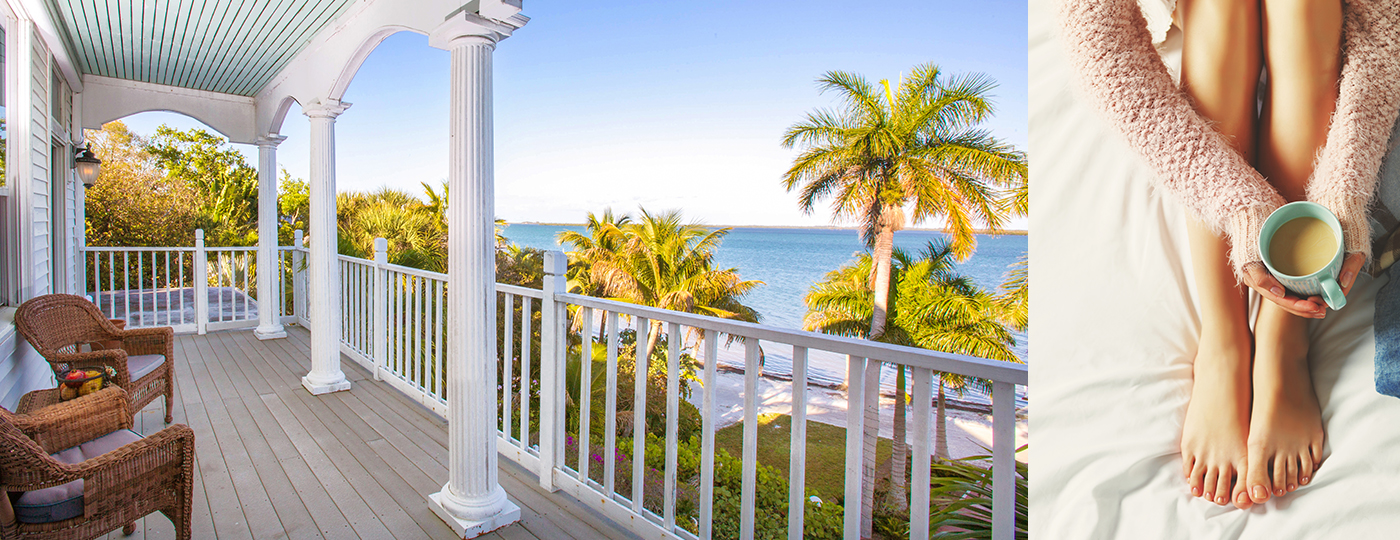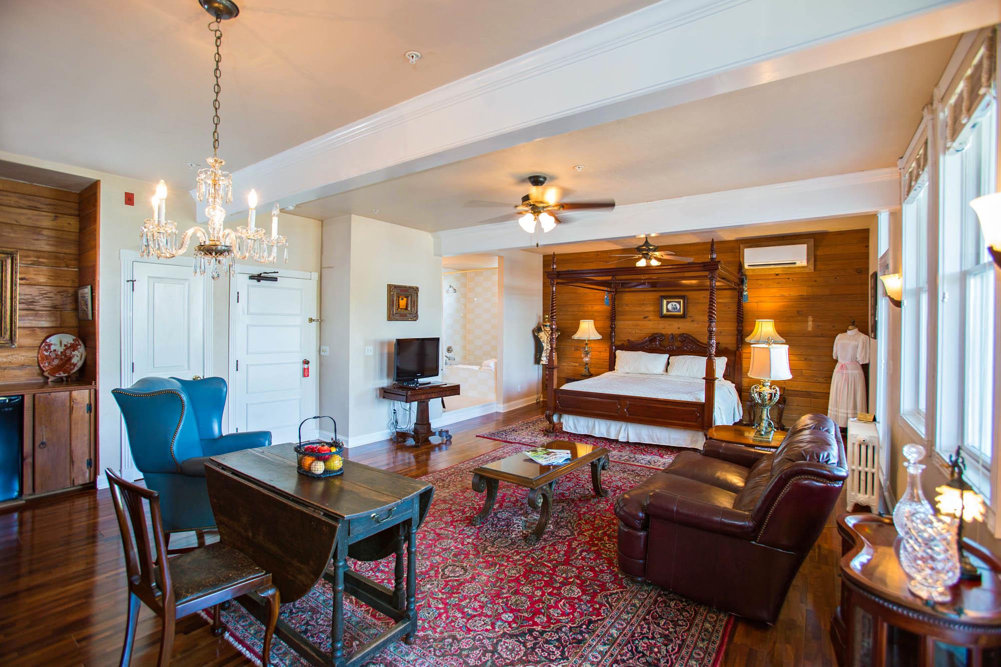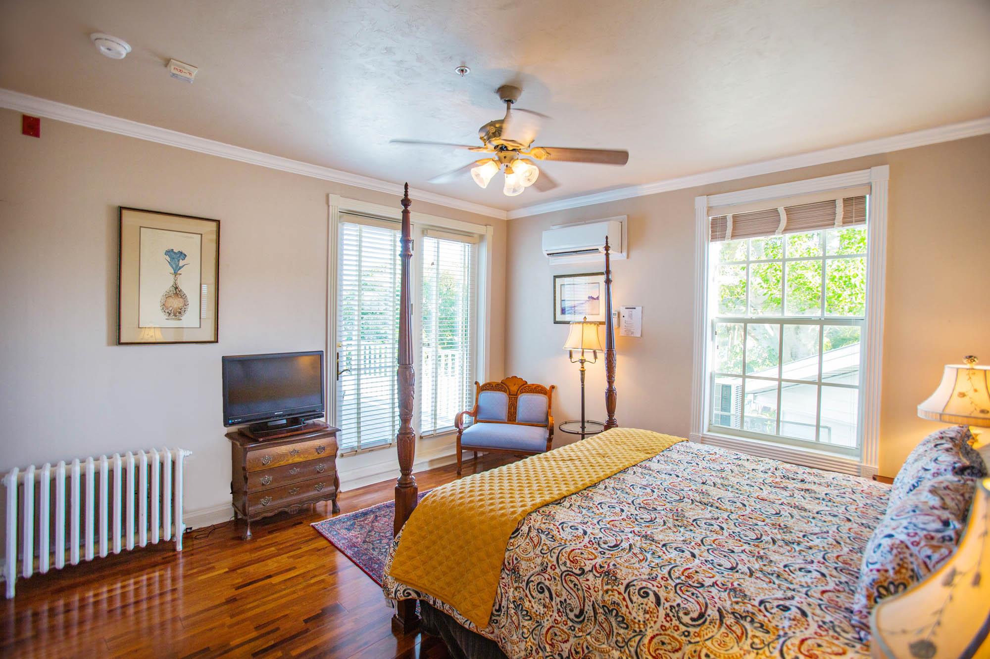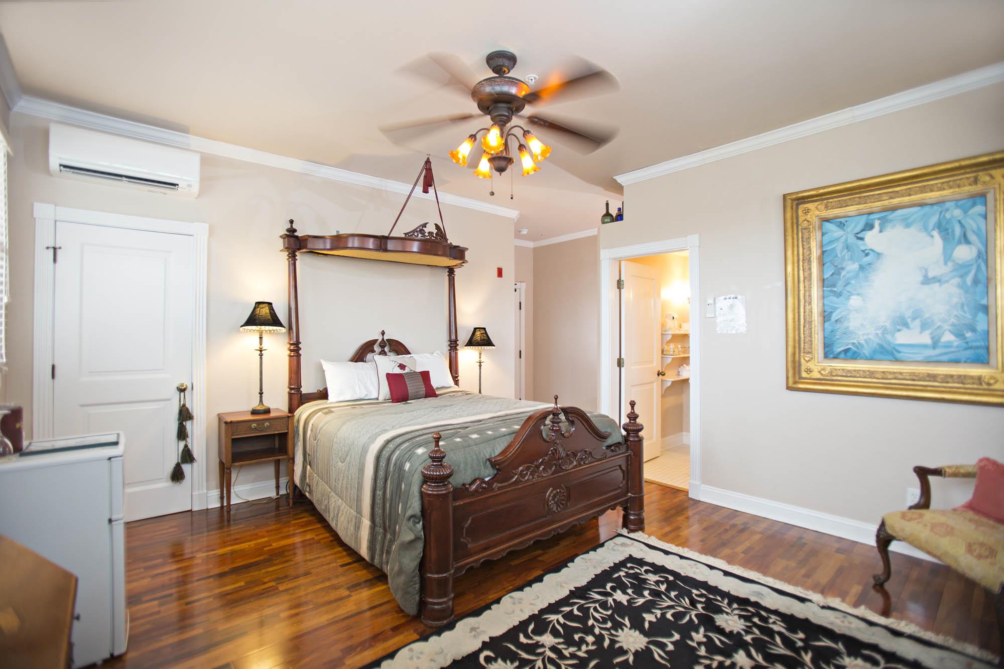 The Joseffa Room is located on the second floor of the Historic Collier Inn and offers a large open deck overlooking the bay and the pool patio. A four-poster king size bed, original hardwood floors and cozy ambiance make this room both quaint and romantic, reflecting an island legend of a Spanish princess named Joseffa who was held captive here two hundred years ago.