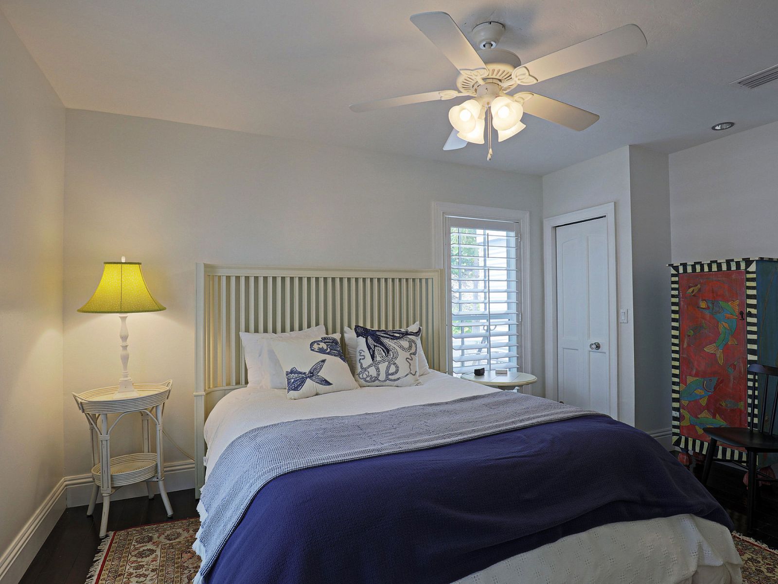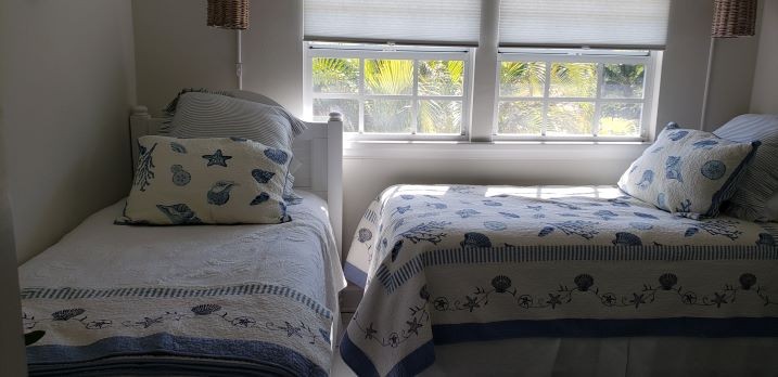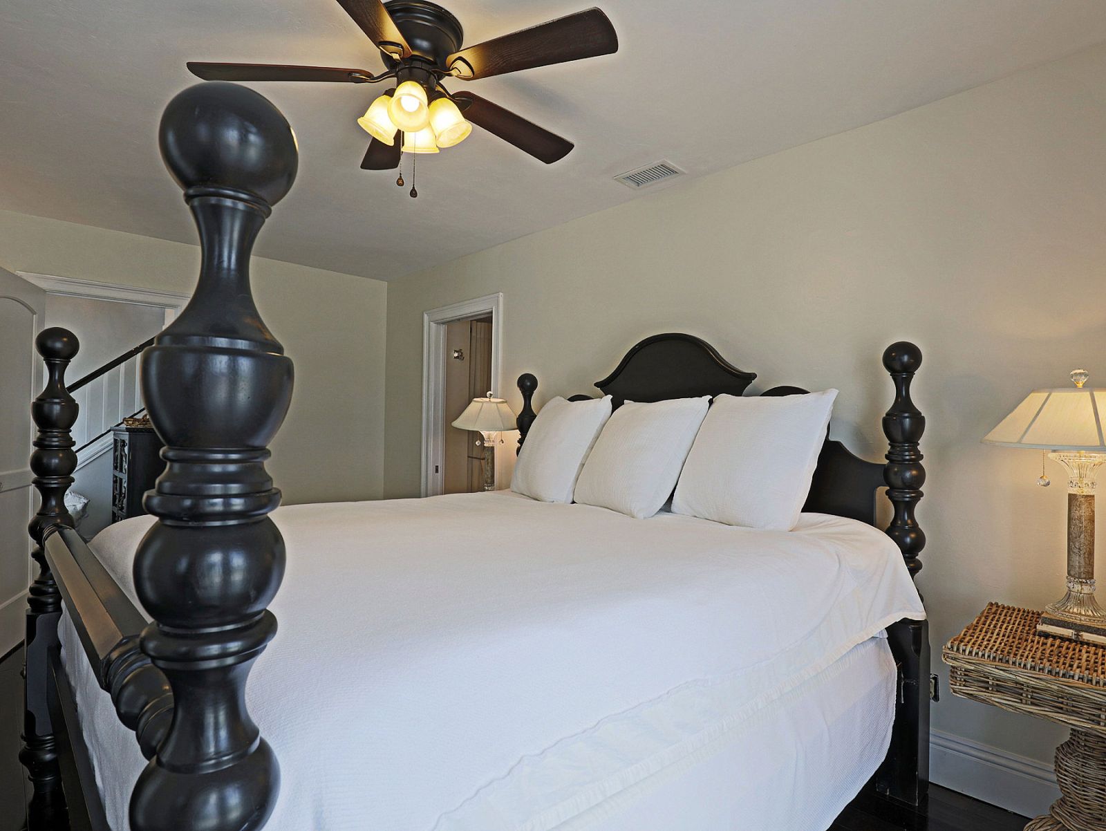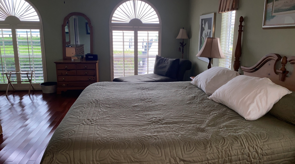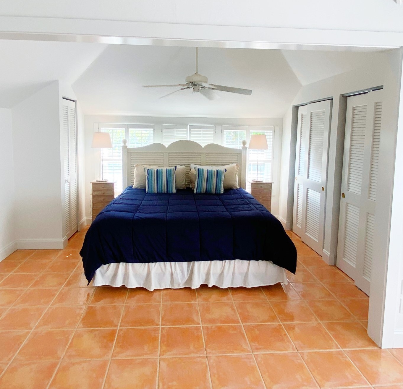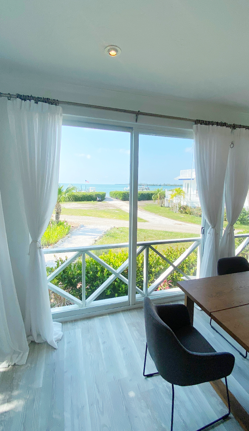205B is a waterfront second floor one bedroom, one bath hotel style suite at the guest house of Rendezvous Cottages. Located on the eastern shore of Useppa this suite was completely remodeled in 2022. Step directly from your bedroom on to a large outdoor private deck that is perfect for sunbathing and evening drinks. Because it is on the second floor, the waterfront views from your bedroom and private deck are breathtaking. A large screen TV is in the bedroom along with free Wi-Fi.