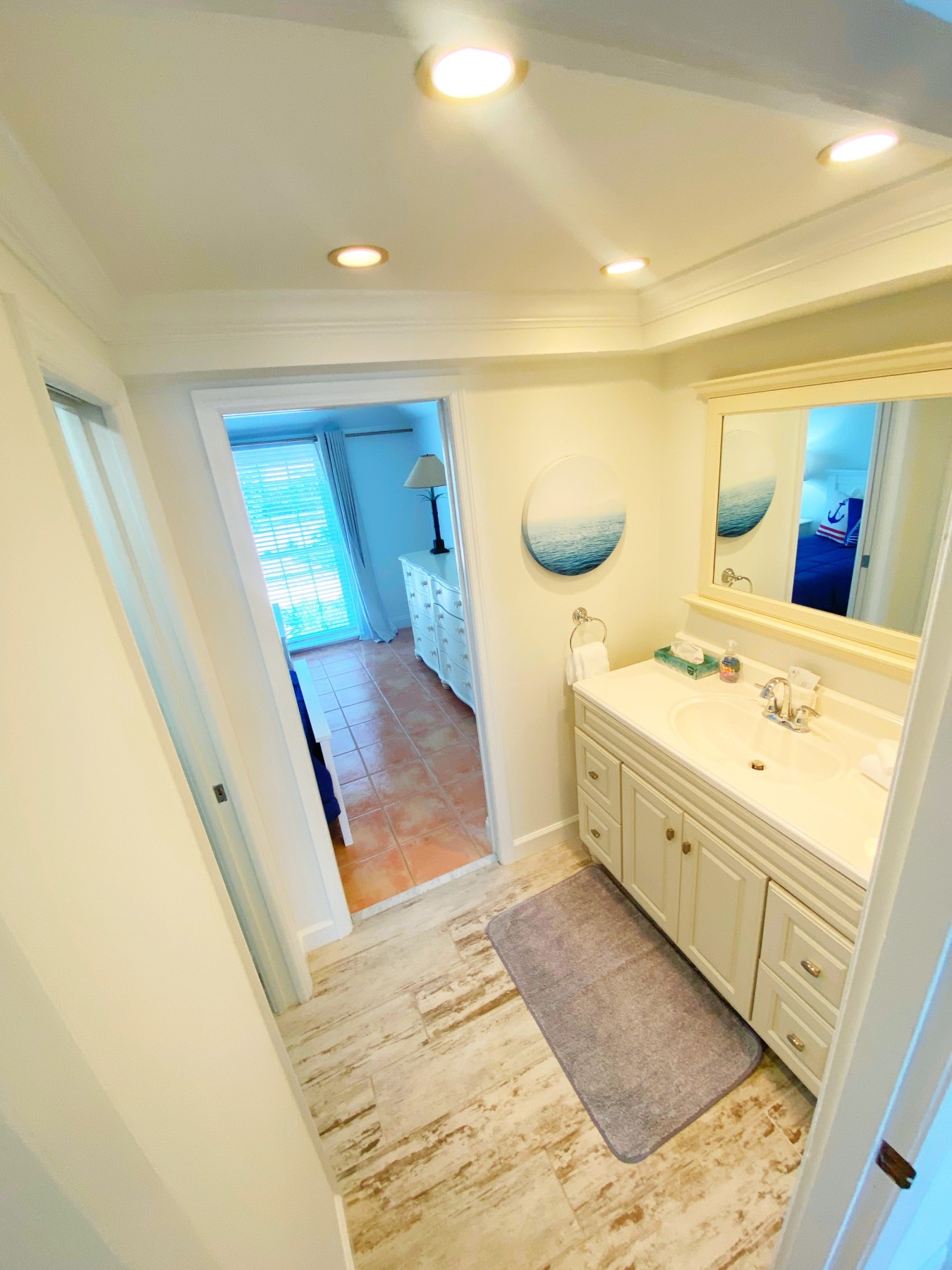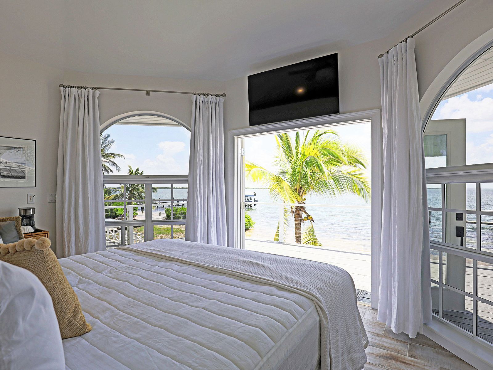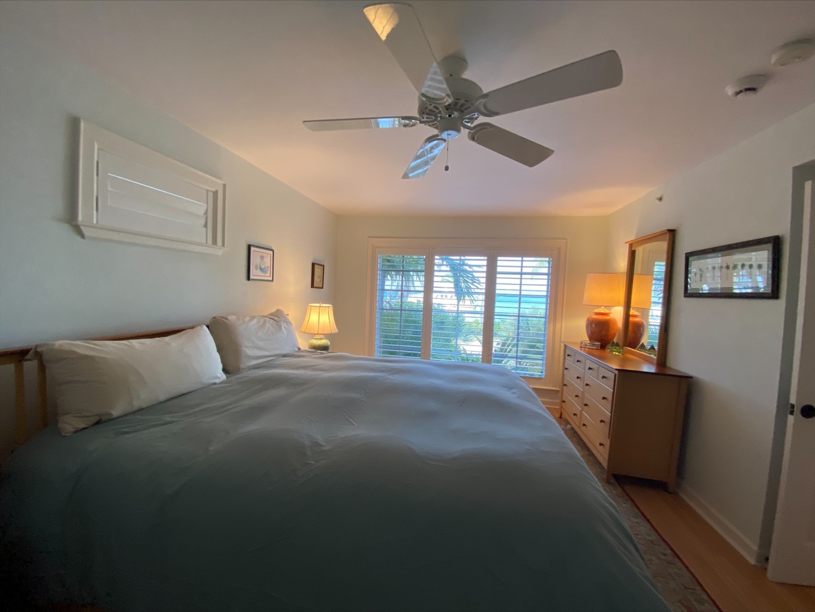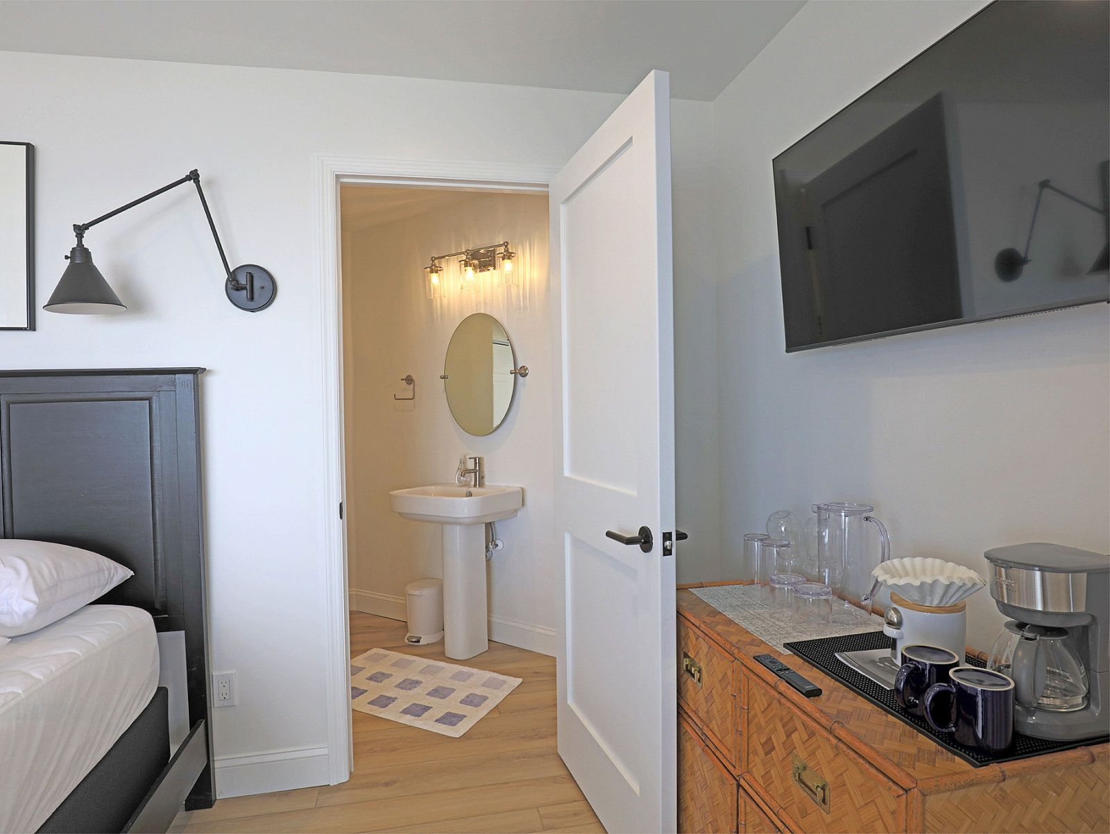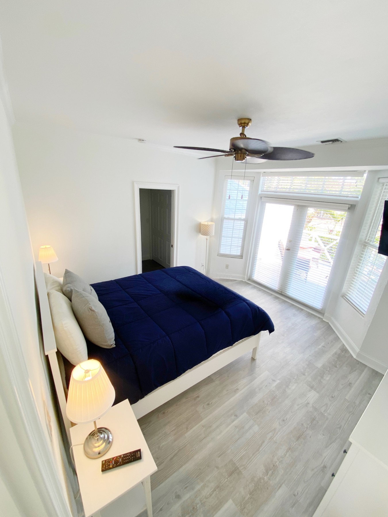 205B is a waterfront second floor one bedroom, one bath hotel style suite at the guest house of Rendezvous Cottages. Located on the eastern shore of Useppa this suite was completely remodeled in 2022. Step directly from your bedroom on to a large outdoor private deck that is perfect for sunbathing and evening drinks. Because it is on the second floor, the waterfront views from your bedroom and private deck are breathtaking. A large screen TV is in the bedroom along with free Wi-Fi.