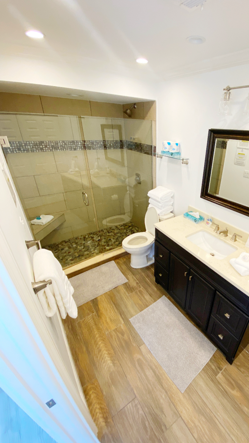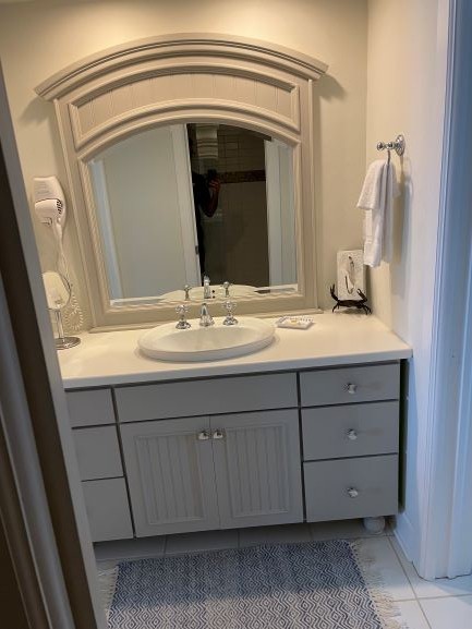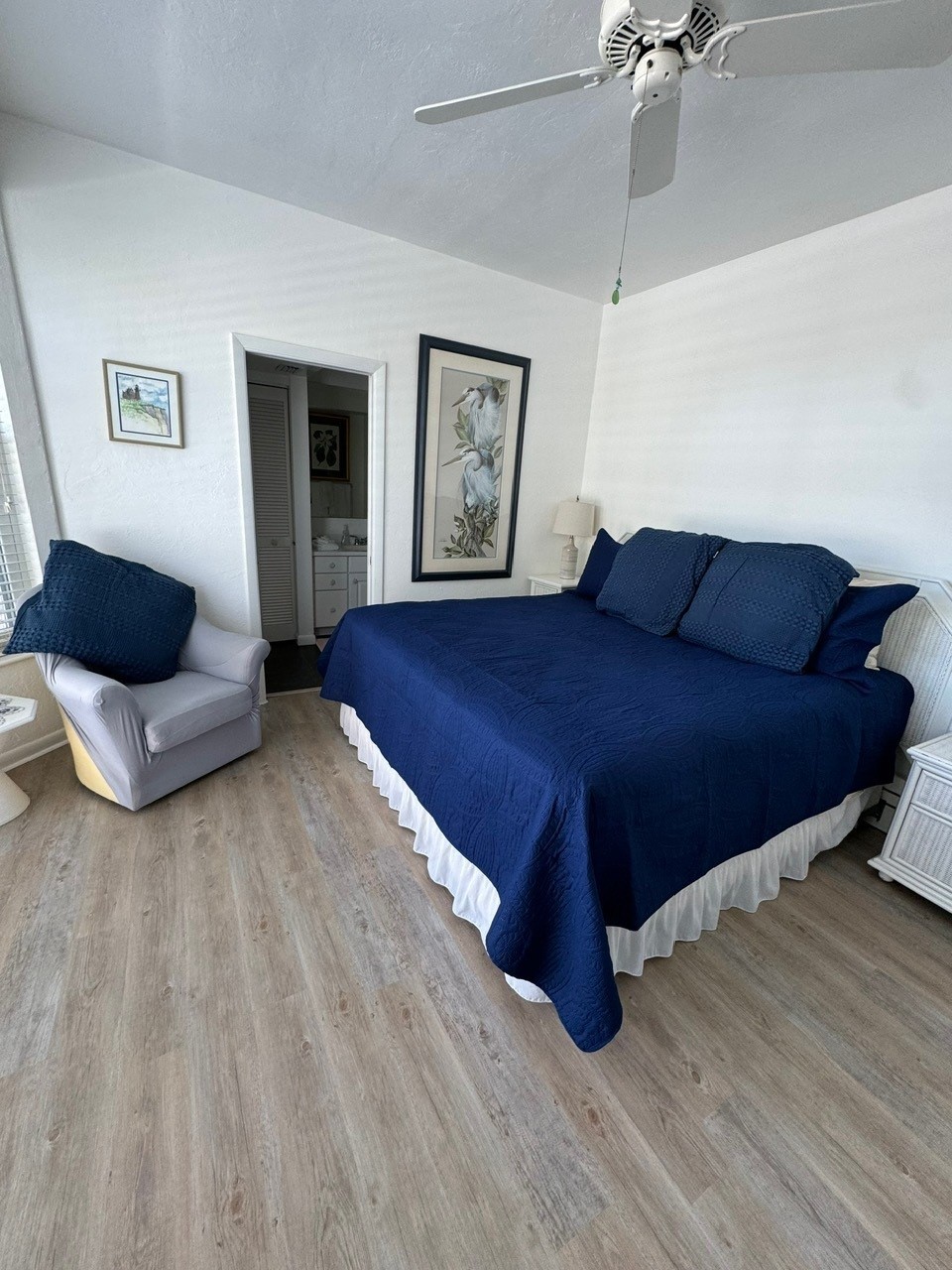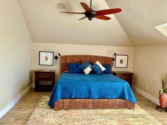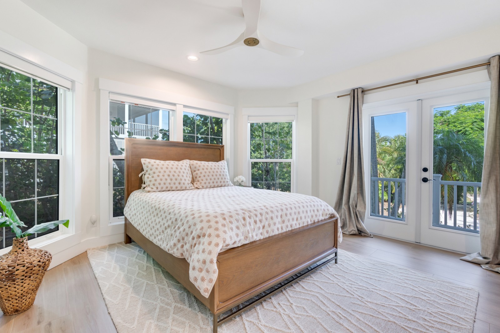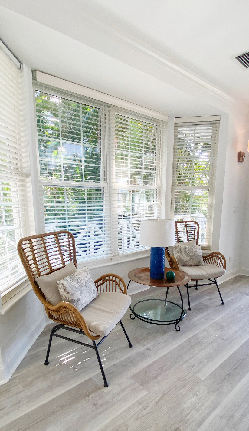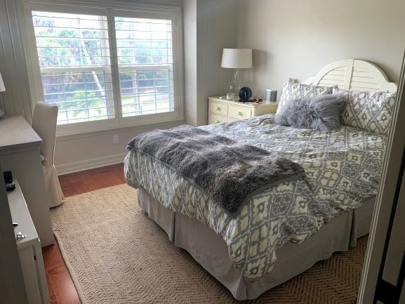 205B is a waterfront second floor one bedroom, one bath hotel style suite at the guest house of Rendezvous Cottages. Located on the eastern shore of Useppa this suite was completely remodeled in 2022. Step directly from your bedroom on to a large outdoor private deck that is perfect for sunbathing and evening drinks. Because it is on the second floor, the waterfront views from your bedroom and private deck are breathtaking. A large screen TV is in the bedroom along with free Wi-Fi.
