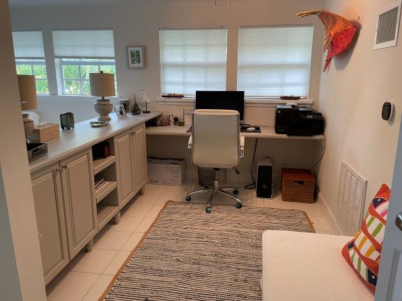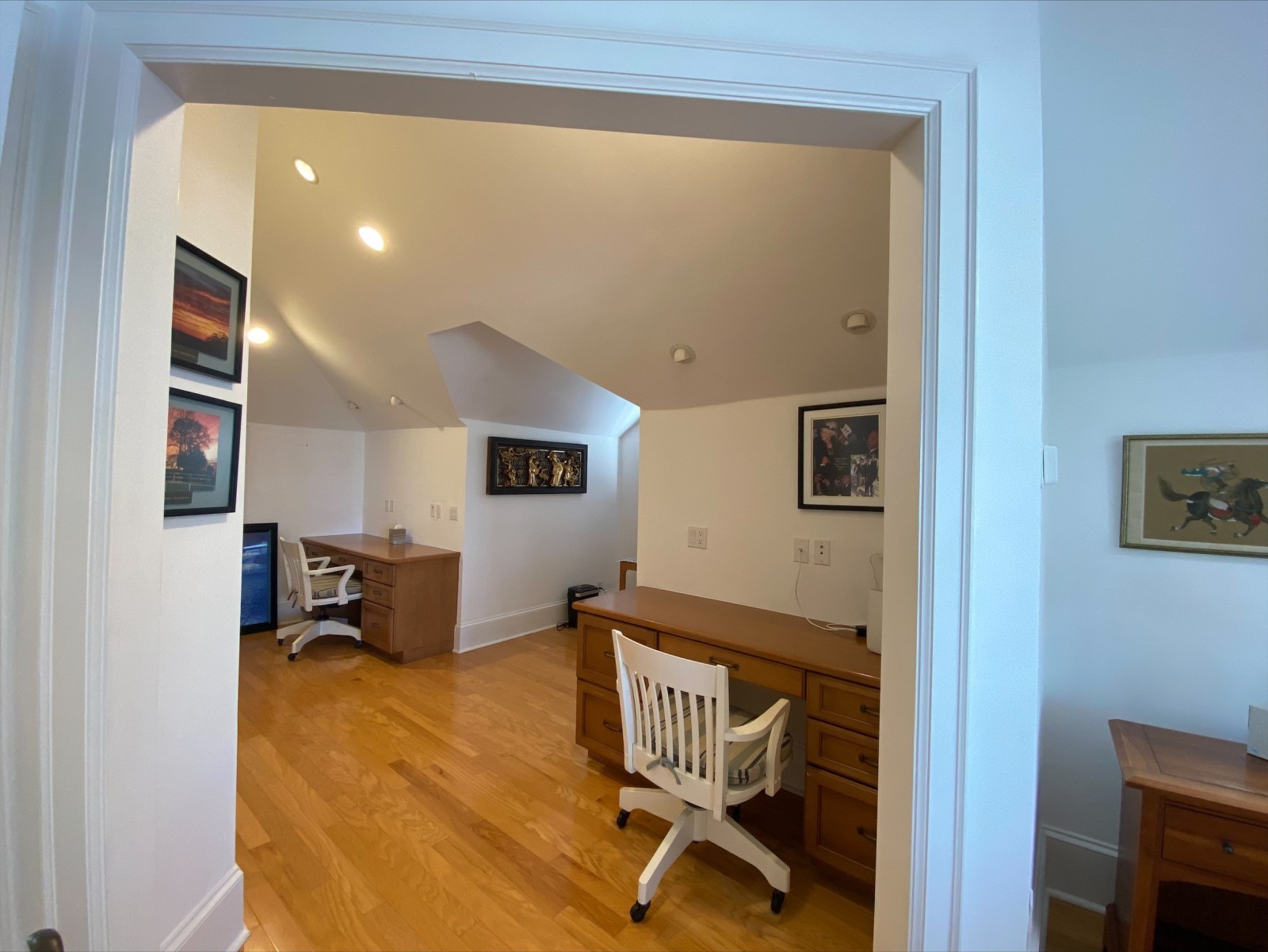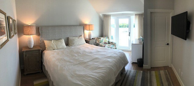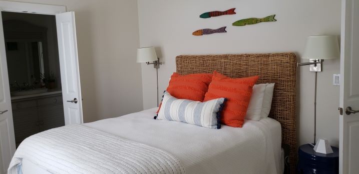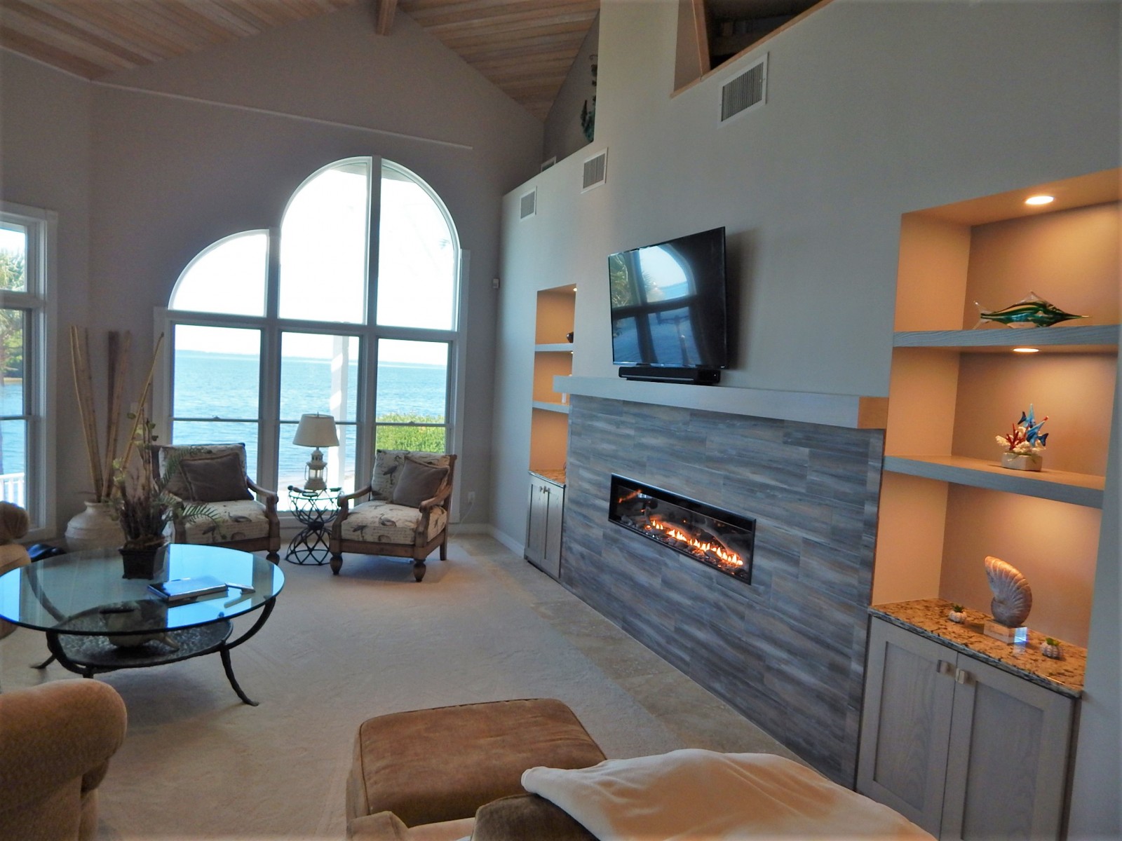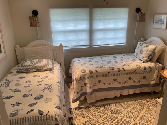 Three bedrooms, two baths plus fully equipped office, chef’s kitchen, and public dock for a 24′ boat. We have flat-screen televisions in every room with premium direct TV including over 500 channels, NetFlix, Amazon Prime etc. as well as a Sonos stereo system throughout the cottage. We also can convert the twin bedroom into a king and can sleep two additional people with the two available futons. Also provided are, beach chairs, umbrella, beach towels, board games, children’s toys and games, fishing pole etc.