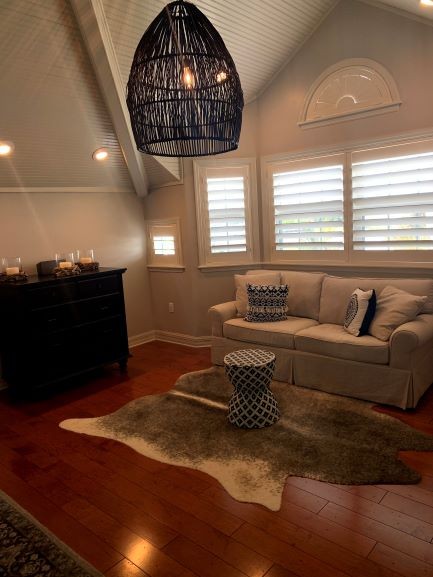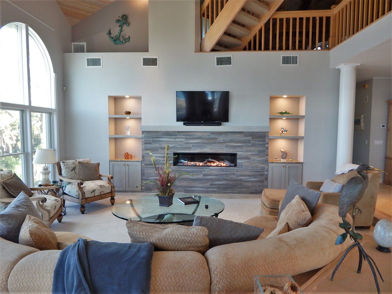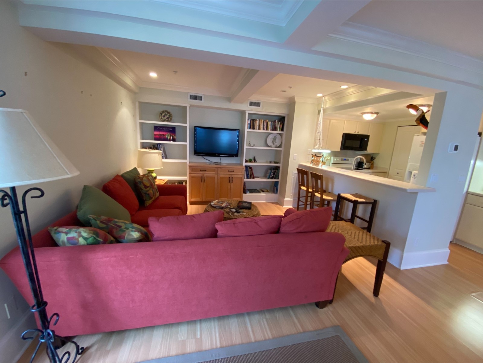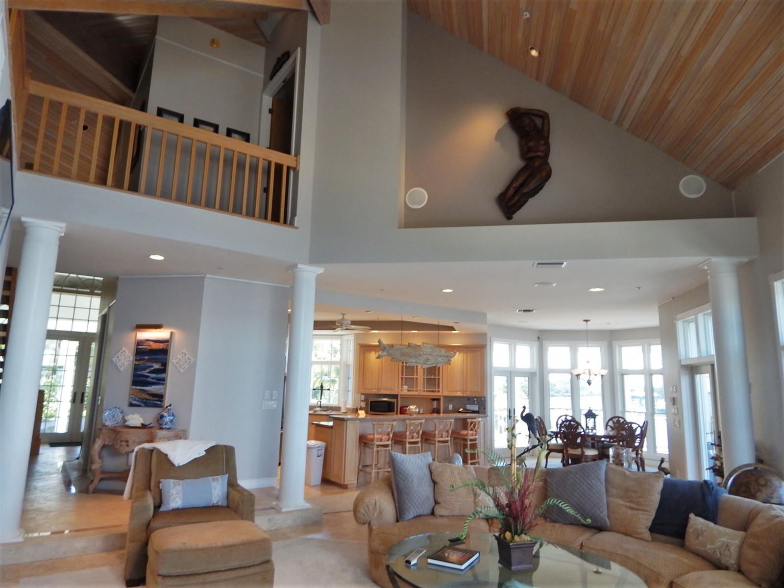 Three bedrooms, two baths plus fully equipped office, chef’s kitchen, and public dock for a 24′ boat. We have flat-screen televisions in every room with premium direct TV including over 500 channels, NetFlix, Amazon Prime etc. as well as a Sonos stereo system throughout the cottage. We also can convert the twin bedroom into a king and can sleep two additional people with the two available futons. Also provided are, beach chairs, umbrella, beach towels, board games, children’s toys and games, fishing pole etc.