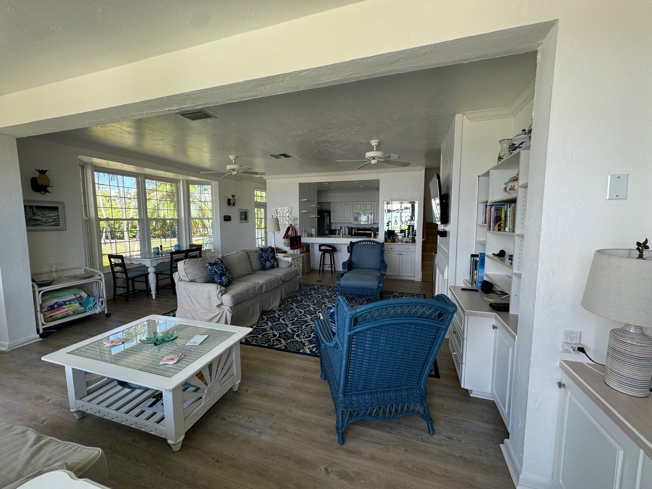 Summer Seas Cottage Boasts beautiful waterfront views that extended all the way to Boca Grande. Dock for up to 24’ conveniently located directly behind the home. BBQ , Washer, Dryer, Wrap around wood deck, Wi-Fi, and fully appointed kitchen.
